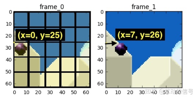 我们预计那个球会从 x=0, y=25 移动到 x=6, y=26 , x 和 y 的值就是 运动向量 。 进一步 节省数据量的方法是,只编码这两者运动向量的差。所以,最终运动向量就是 x=6 (6-0), y=1 (26-25) 。