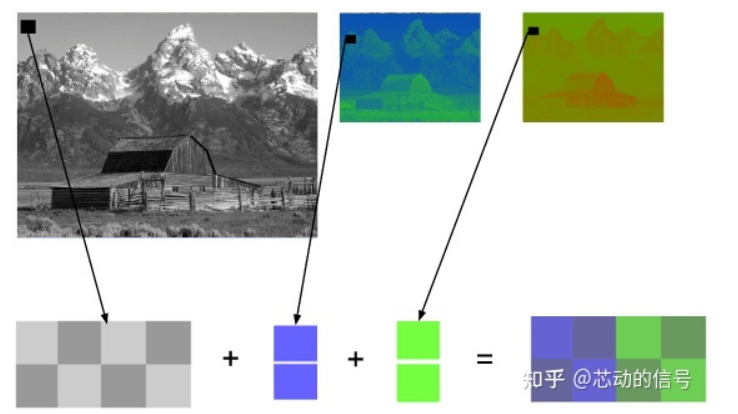 一旦我们有了亮度后,我们就可以拆分颜色(蓝色色度和红色色度):