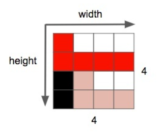 图片的另一个属性是 分辨率 ,即一个平面内像素的数量。通常表示成宽*高,例如下面这张 4x4 的图片。
