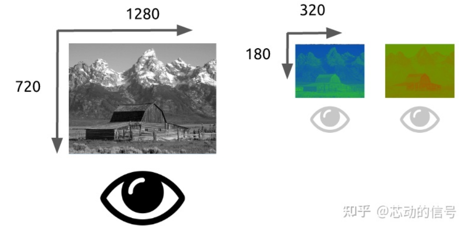 一旦我们能从图像中分离出亮度和色度,我们就可以利用人类视觉系统对亮度比色度更敏感的特点,选择性地剔除信息。 色度子采样 是一种编码图像时,使 色度分辨率低于亮度 的技术。