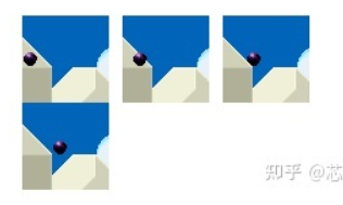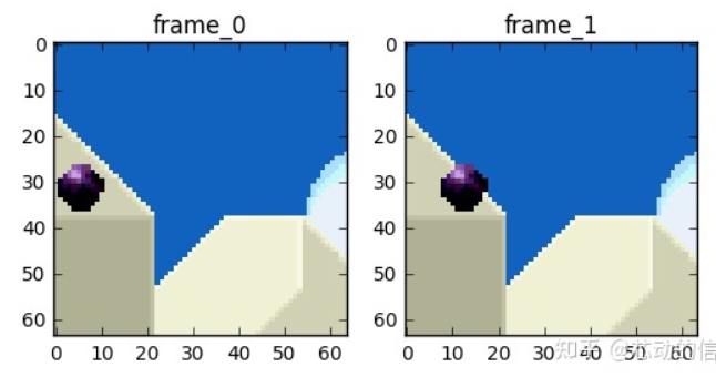 P 帧利用了一个事实:当前的画面几乎总能 使用之前的一帧进行渲染 。例如,在第二帧,唯一的改变是球向前移动了。仅仅使用(第二帧)对前一帧的引用和差值,我们就能重建前一帧。