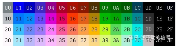 编码彩色图像的其它方法 还有许多其它模型也可以用来表示色彩,进而组成图像。例如,给每种颜色都标上序号(如下图),这样每个像素仅需一个字节就可以表示出来,而不是 RGB 模型通常所需的 3 个。在这样一个模型里我们可以用一个二维矩阵来代替