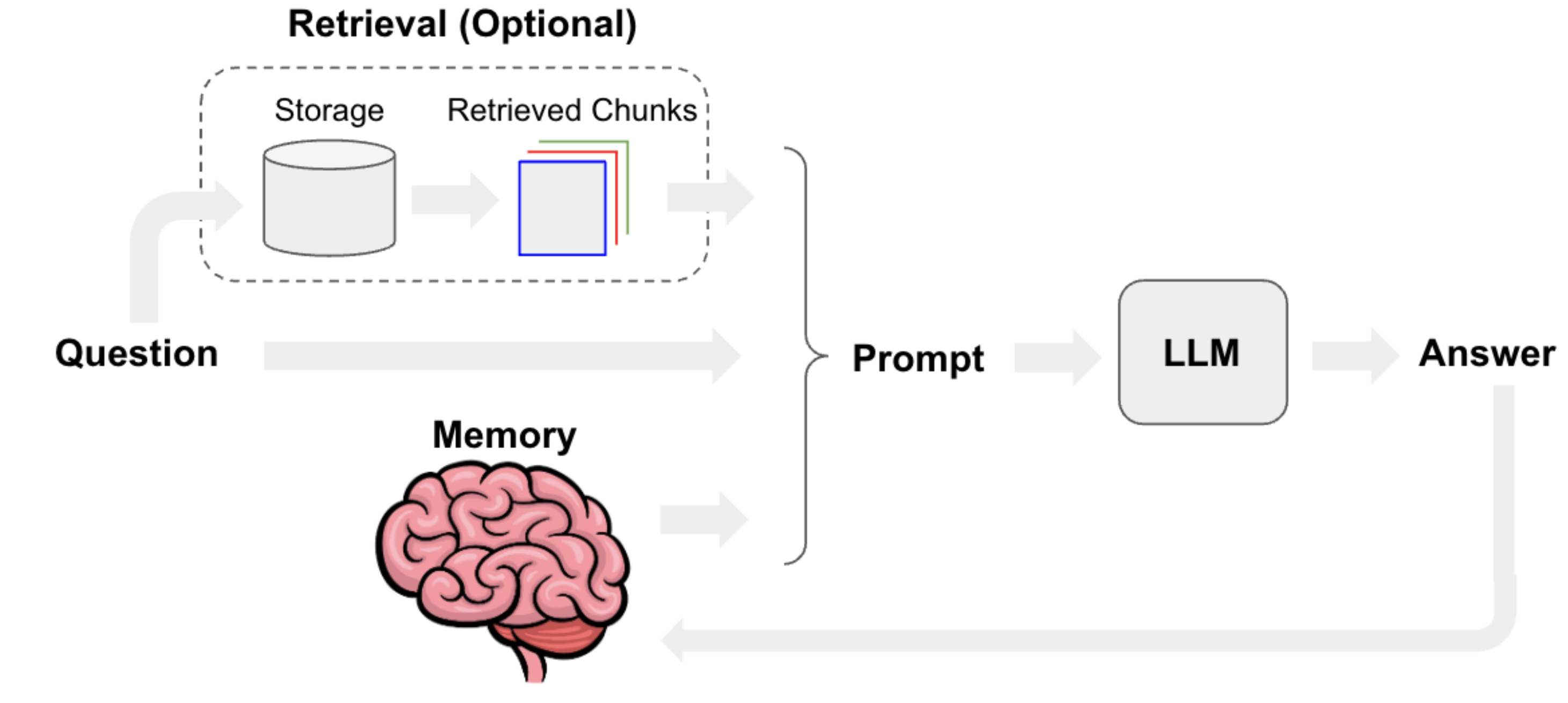 作为对比,无RAG的情况是用户的输入文本(包括之前的Memory)直接作为Prompt输给LLM。