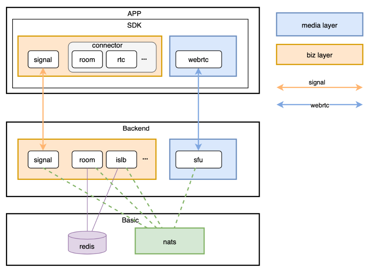 SDK<---grpc--->signal<---nats--->Room/ISLB<---nats--->signal<---grpc--->SDK