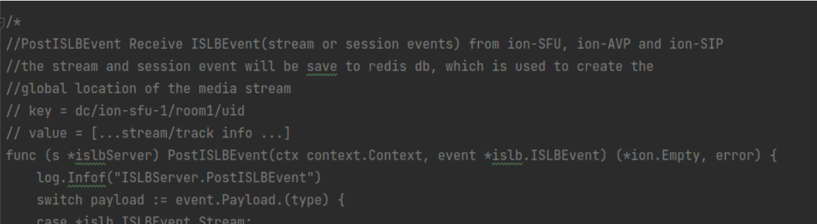 从这个注释看是接收流信息的函数,负责接收视频流的建立和断开过程,并且把现在所有的流信息写进数据库里。这地方和前面的handleGetNodes对应起来了,在islb里查SFU节点的流信息可能是一个将要被删除的功能。这功能应该移到别的地方去了吧。