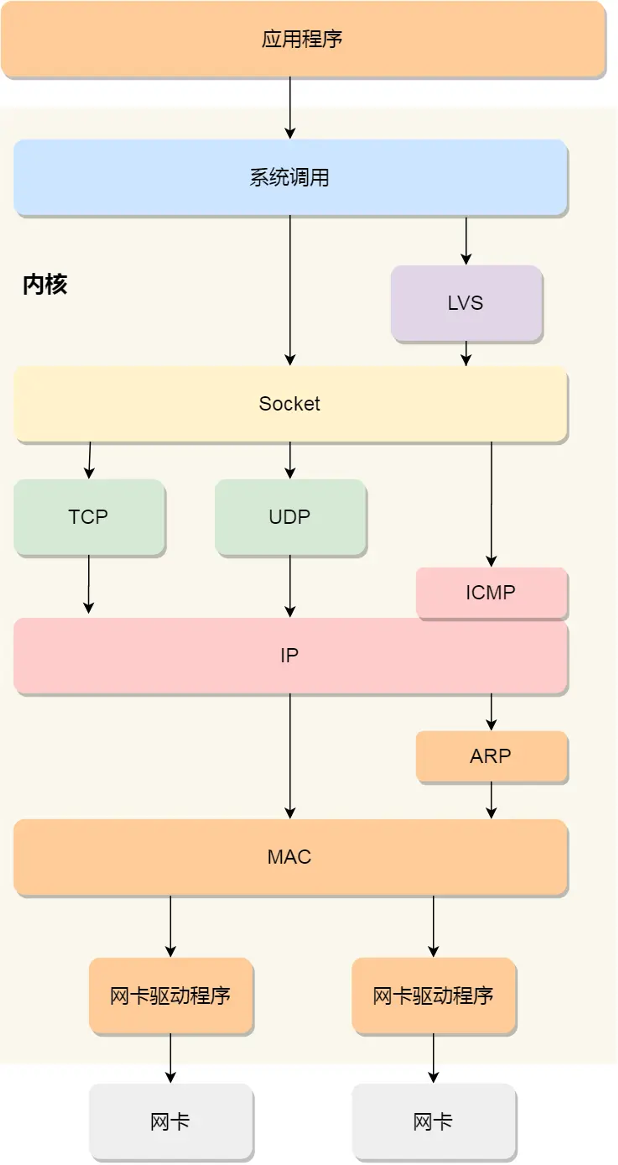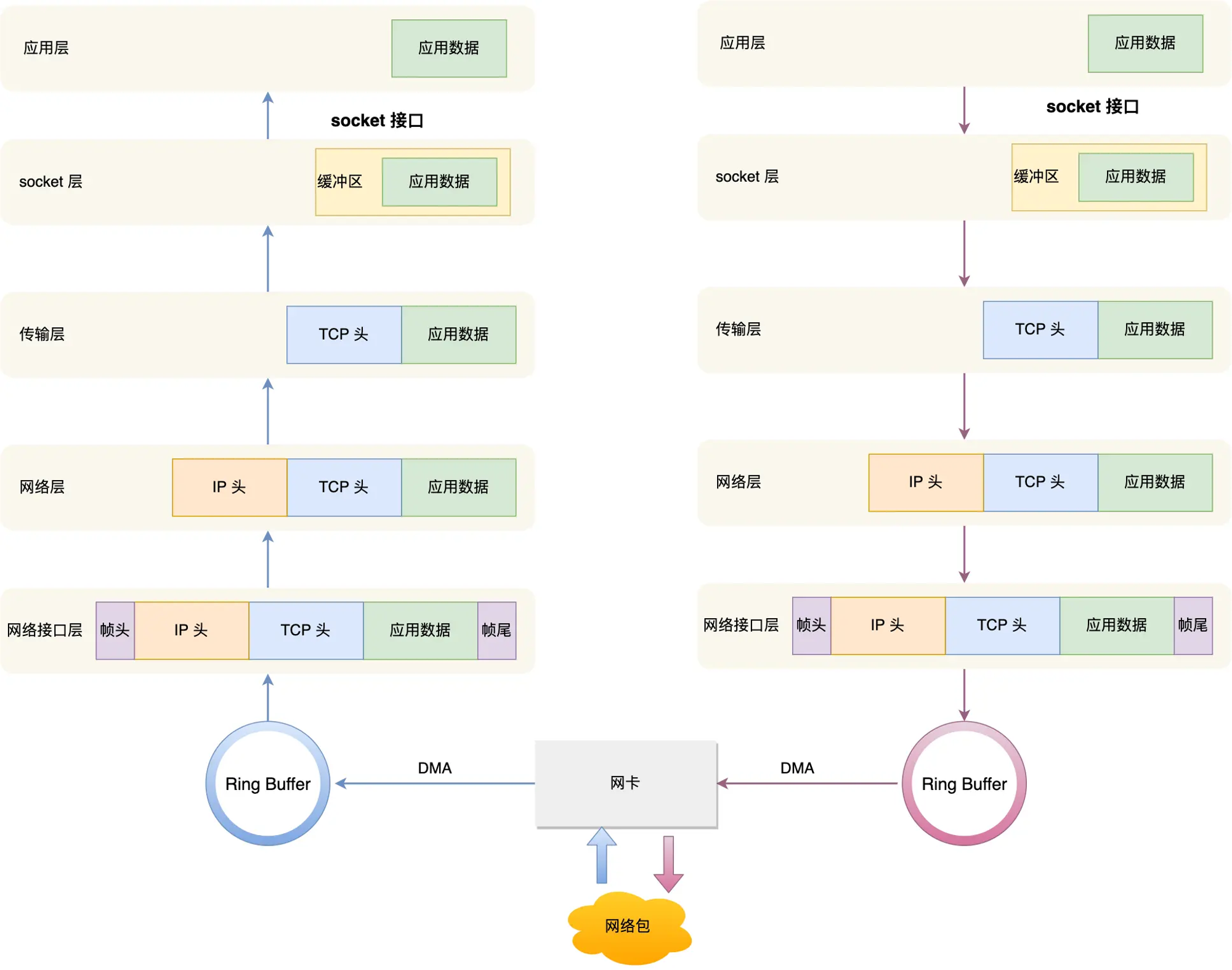 最下面的一层,则是网卡驱动程序和硬件网卡设备;