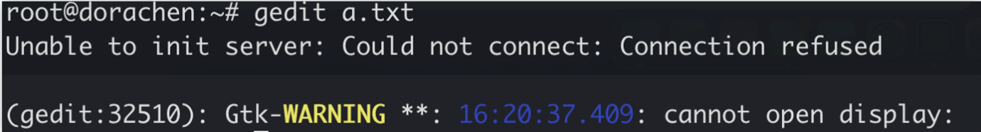 当没有安装X11 forwarding的时候,gedit命令会提示cannot open display