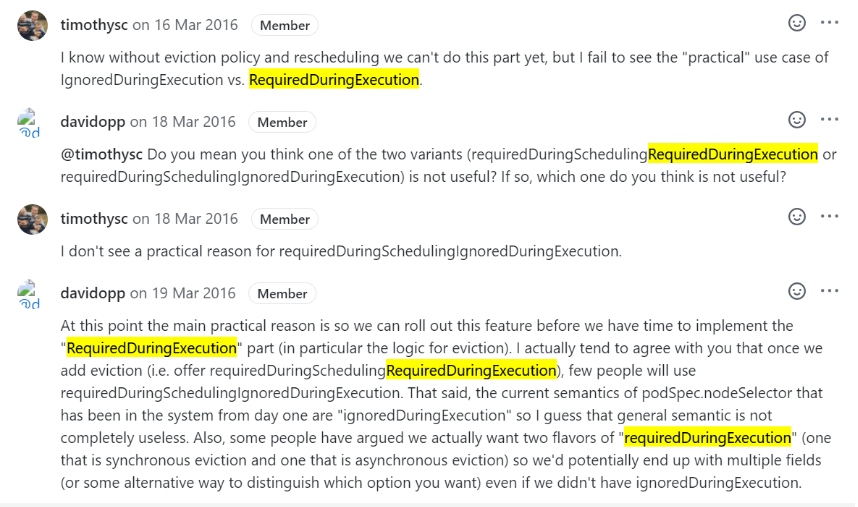 requiredDuringSchedulingRequiredDuringExecution的开发似乎非常困难,这么多年了还没做好