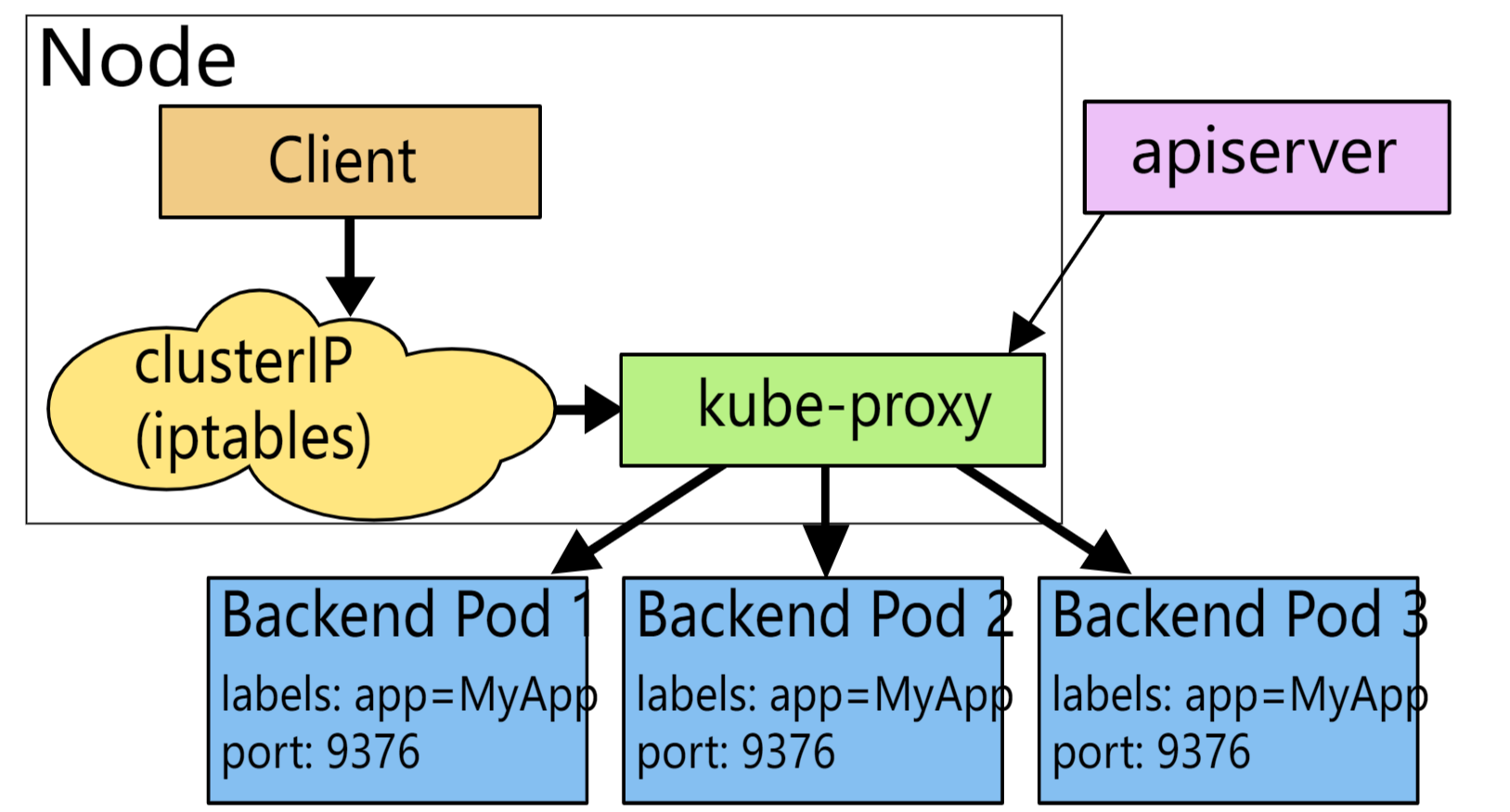 node本身通过端口去请求你的Pod(称之为主机端口),但这是一个很特殊的操作。转发方式如何实现也是容器运行时的细节。Pod自己并不知道这些主机端口是否存在。