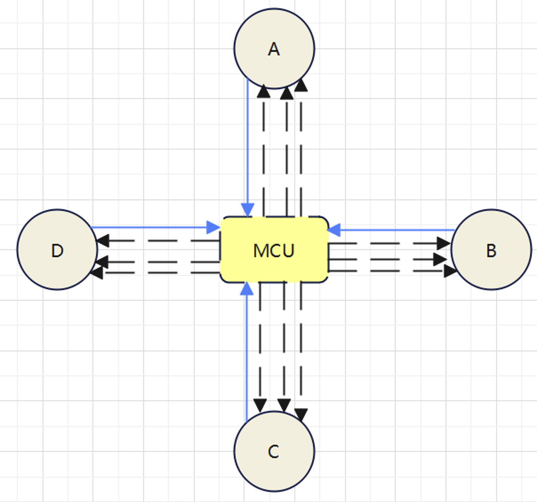 MCU:MCU表示多点控制单元。由使用peer建立连接变为只需要连接到中心服务器,中心服务器反过来发送信息到其它peers,并且对其它peers也是这样。